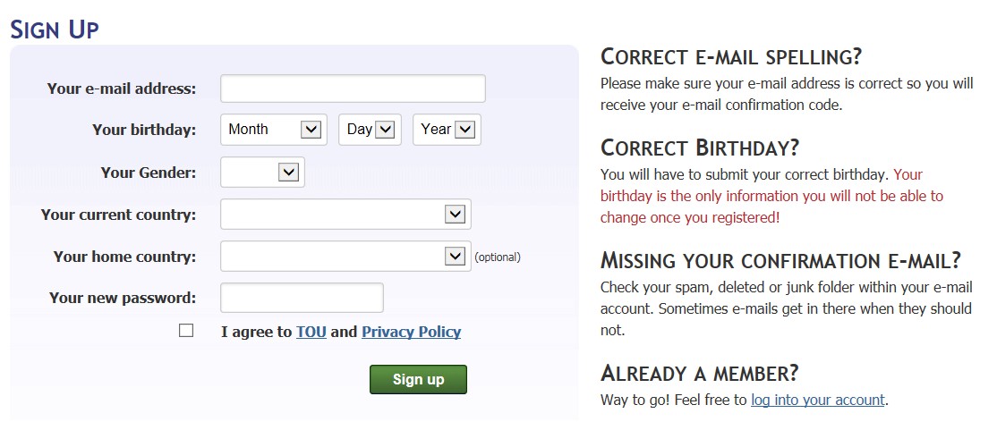 a. Go to the site of Penpal World. http://www.penpalworld.com/ and click on Sign up Now in the blue box next to the world image.